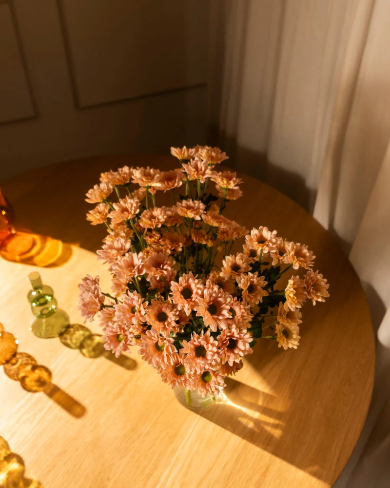 Diese pfirsichfarbenen Chrysanthemen machen’s dir leicht: ungebunden, unkompliziert und wunderschön. 🍑 Verschenke liebe Wünsche oder schaffe dir zuhause eine ruhige, blühende Atmosphäre. 😇