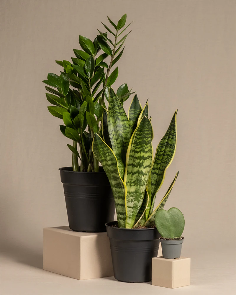 Grüne Überlebenskünstler – selbst ohne grünen Daumen werden dir diese drei besonnenen Schönheiten Freude bereiten. Sie wollen dir beweisen: Nicht alles, was du berührst, ist dem Untergang geweiht. Hoya, Bogenhanf und Glücksfeder – das ultimative Trio für jeden Neuling! 💪🪖